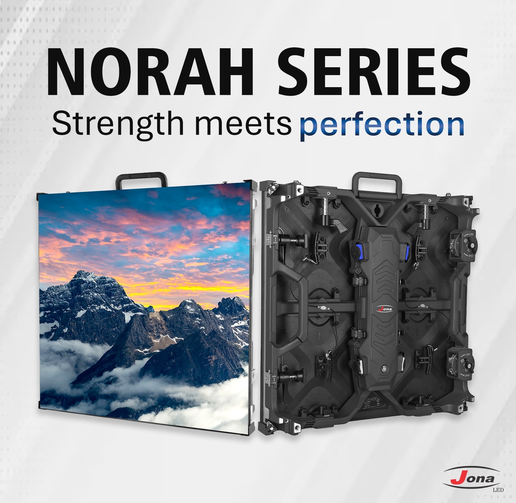Introducing the latest 5th generation Jona LED Norah Indoor Series LED video wall displays that will revolutionize your event viewing experience. The Norah Indoor Series is the ideal rental solution for events with its sharp, bright images that entice audiences, and its mechanical components that are designed to withstand frequent assembly and breakdown requirements.